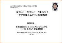 グループワーク後に,ワークブックの良かった点と使い方について,グループディスカッションを行いました.「ステップに沿って行うことで,具体的な目標が立てることがわかった」「PDCAサイクルにのっとってまとめてありよかった」といった意見があがった一方で,「パート2として事例集が欲しい」「調査項目のデータの蓄積が今後は必要」といった建設的な意見もありました.また,使い方として,「研修会で使ってみたい」というご意見もいただきました.